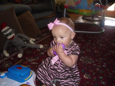Tinsley loves to play with her "Follow me Fiona" toy. It barks, plays music and rolls along. It is supposed to encourage crawling.