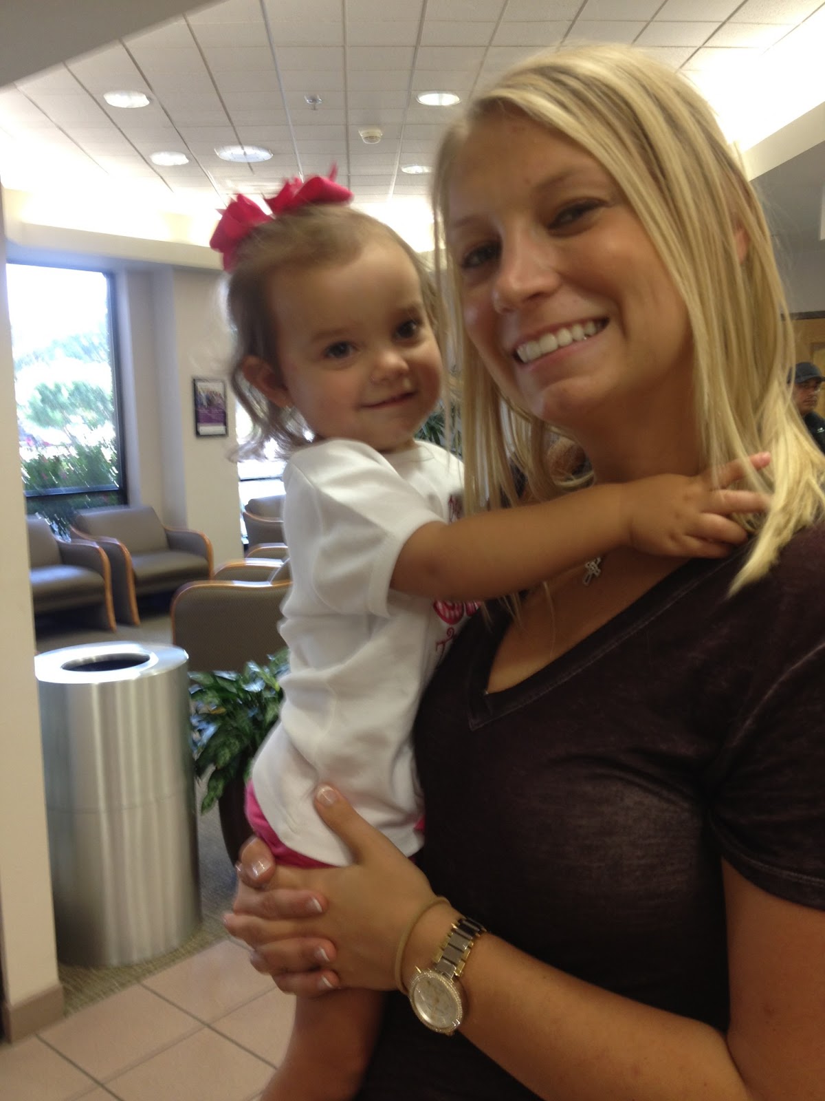 Tinsley waiting for Ace's arrival. Somehow she managed to have a leaky diaper. Aunt Deirdre and Aunt Tiffany saved the day and went and bought her some new pants. :-)